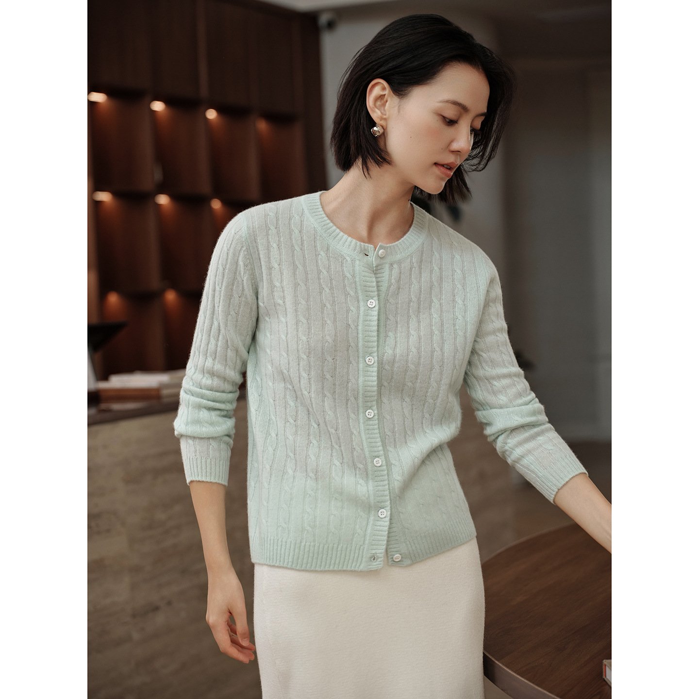 Autumn regular twist cardigan long-sleeved cashmere bottoming knitted sweater versatile women’s round neck