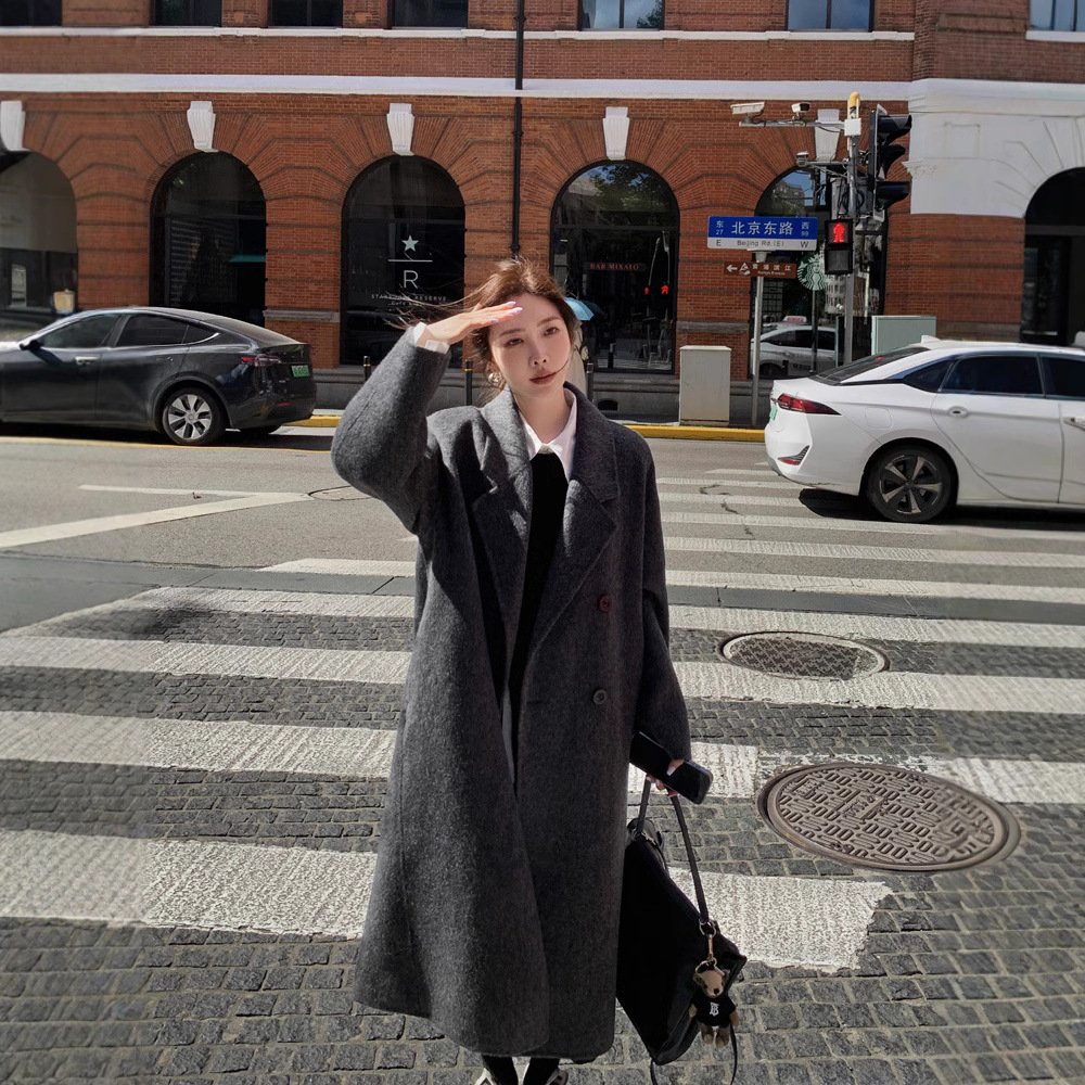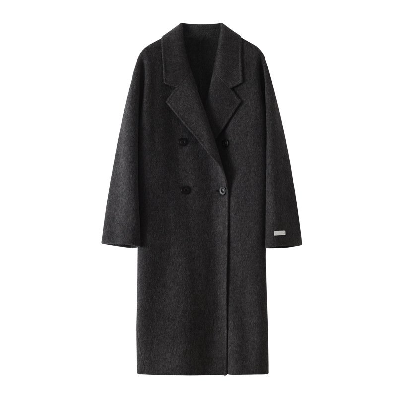 Camel hair long double-sided woolen coat for women, loose wool over-the-knee coat, double-breasted, thick, fashionable and versatile