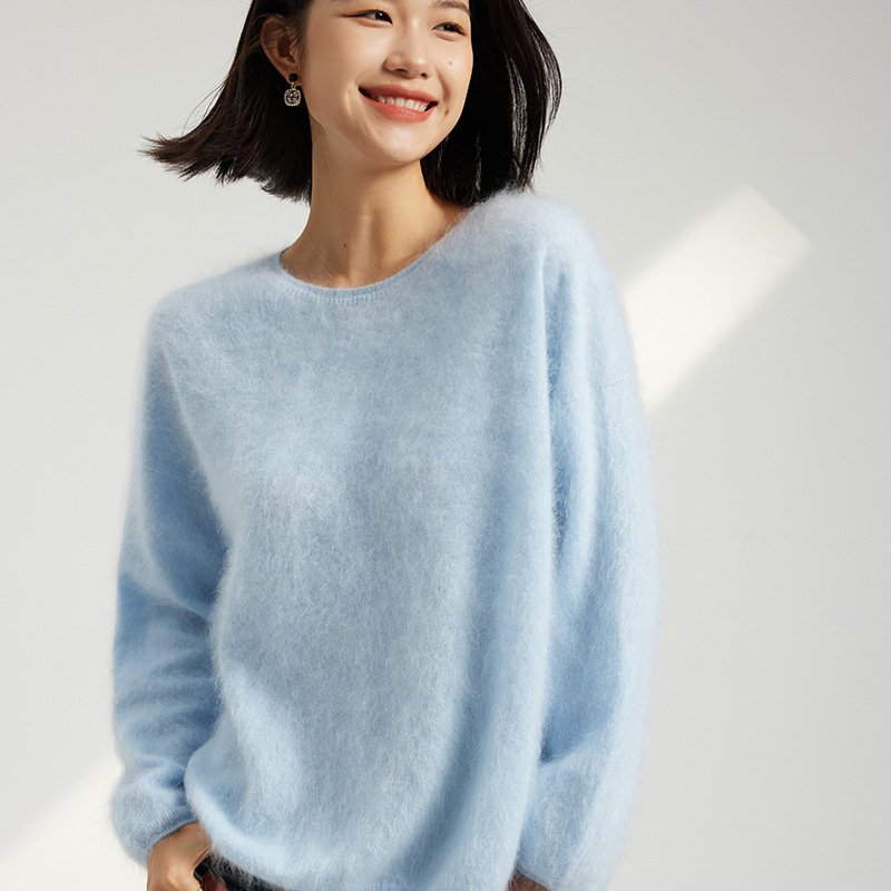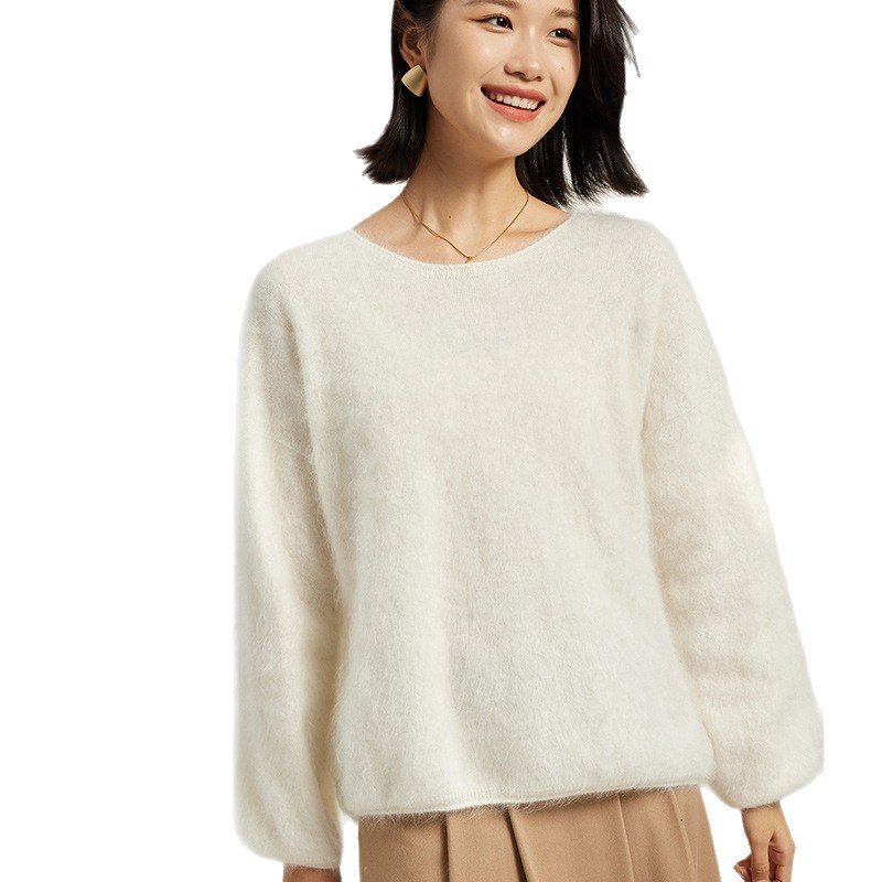 Cashmere brushed casual all-match fashionable brushed one-line off-shoulder crew neck sweater