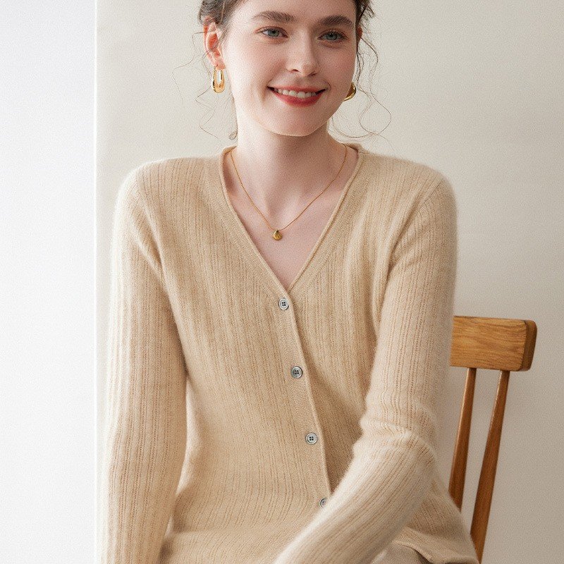 Cashmere collar cashmere cardigan women’s single-breasted soft and waxy skin-friendly knitted high-end quality outer top