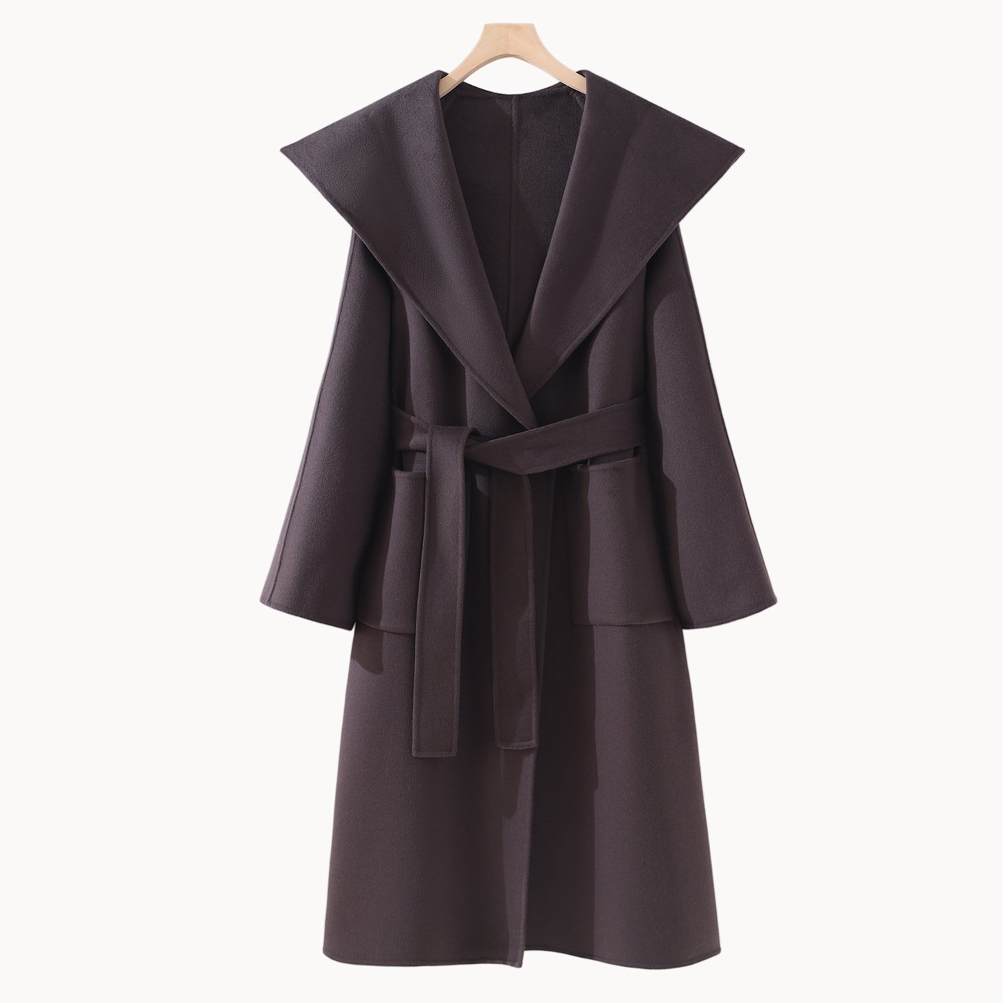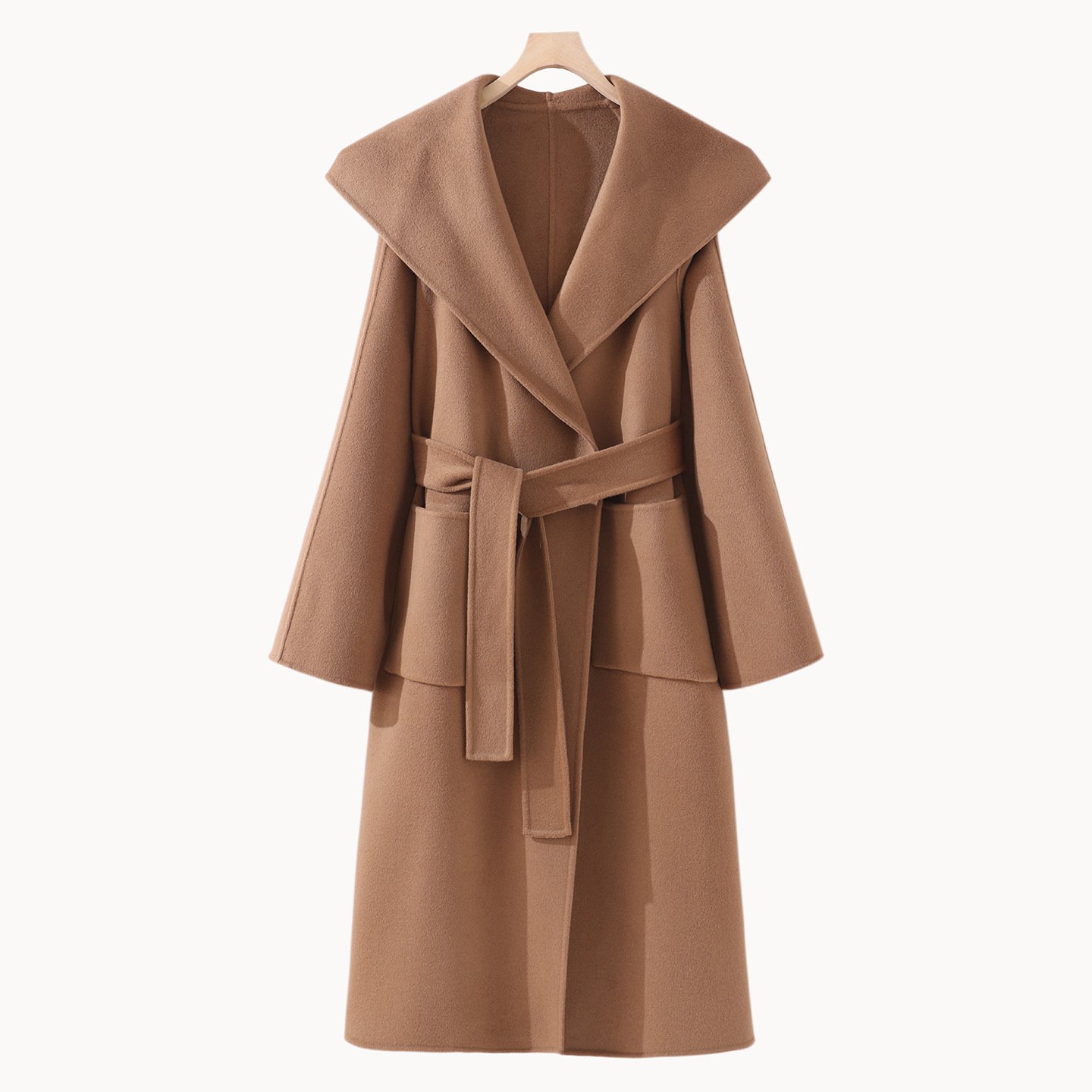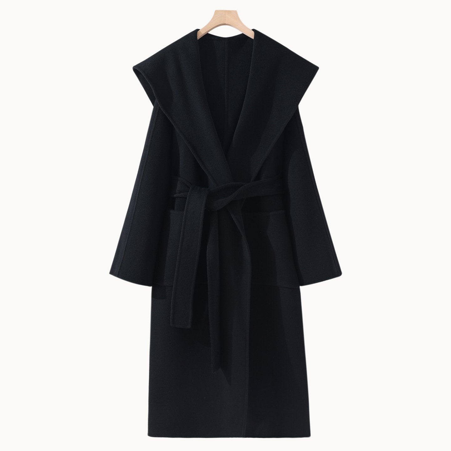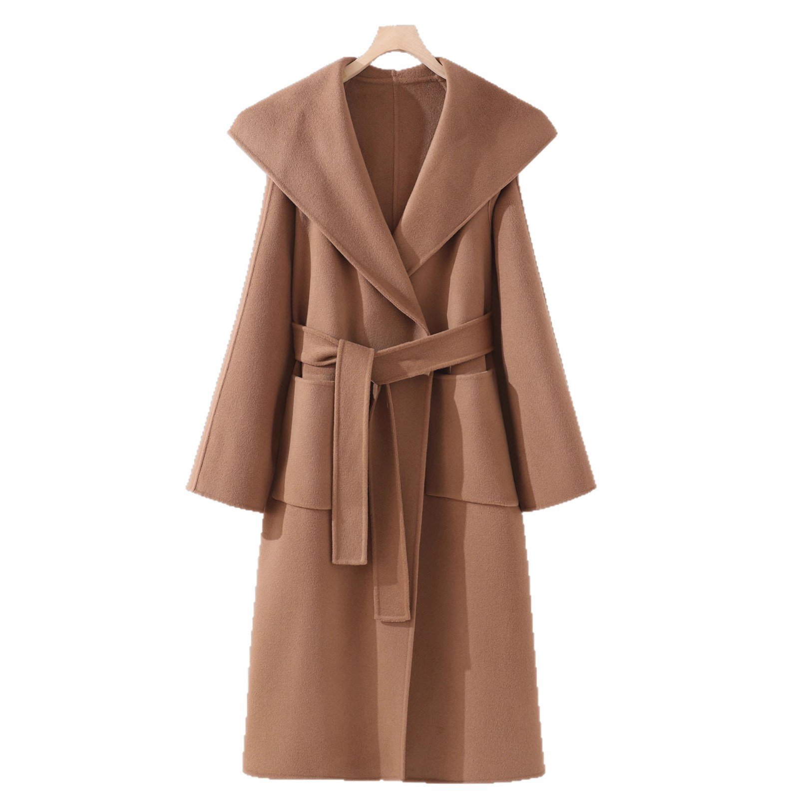 Cashmere double-sided woolen coat wool coat mid-length high-end hooded style