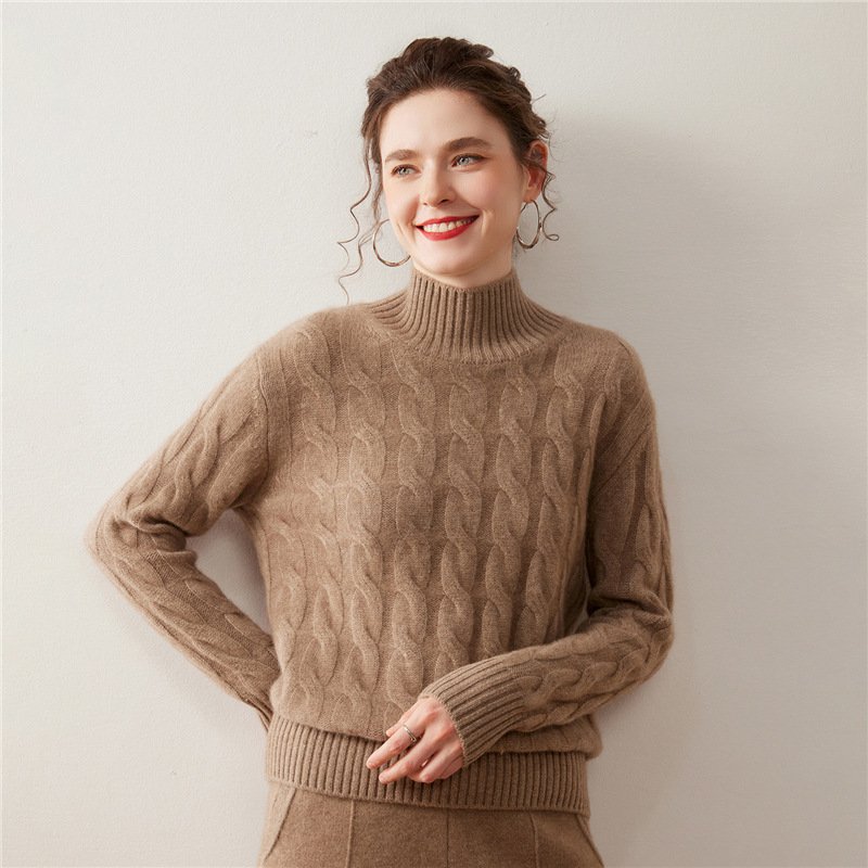 Cashmere turtleneck cable knitted cashmere sweater for women soft and waxy thickened warm knitted bottoming shirt with temperamentCashmere turtleneck cable knitted cashmere sweater for women soft and waxy thickened warm knitted bottoming shirt with temperament
