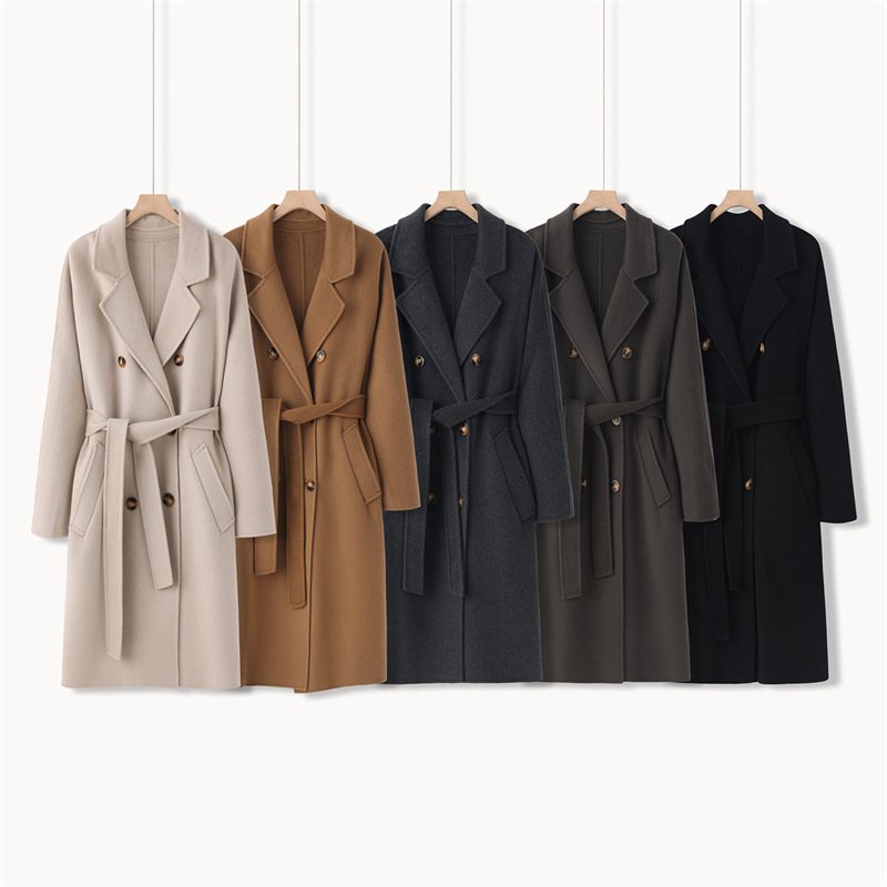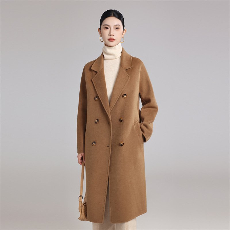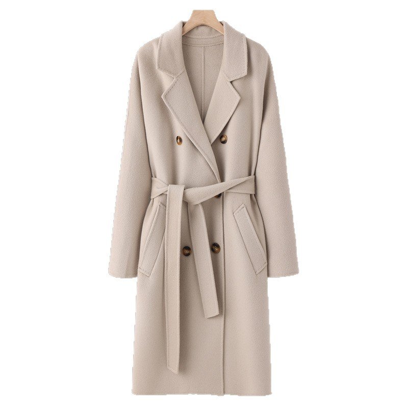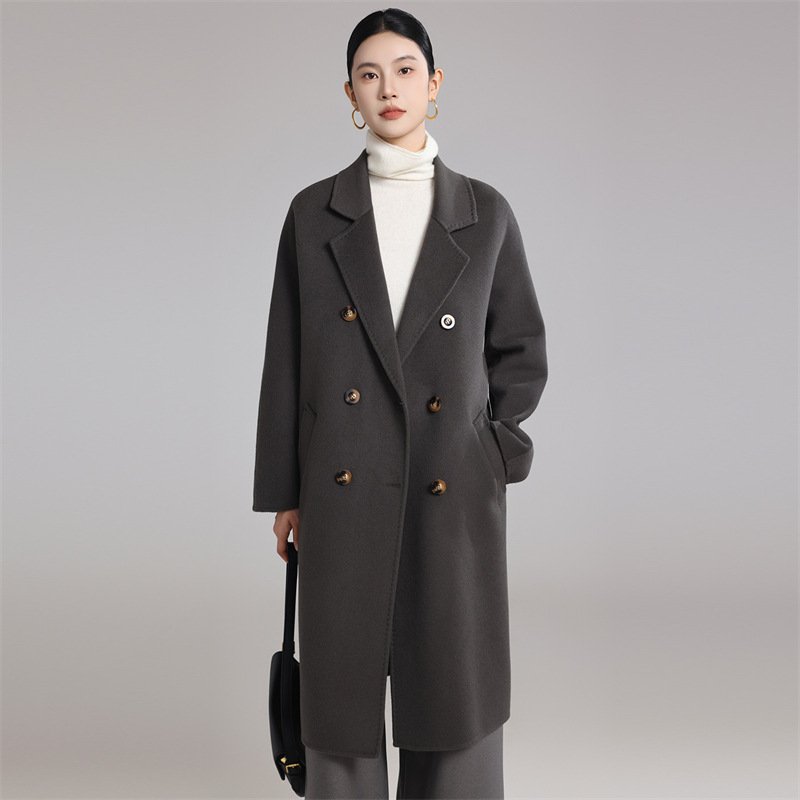 Double-sided cashmere coat women’s wool mid-length loose cocoon-shaped over-the-knee Hepburn style coat