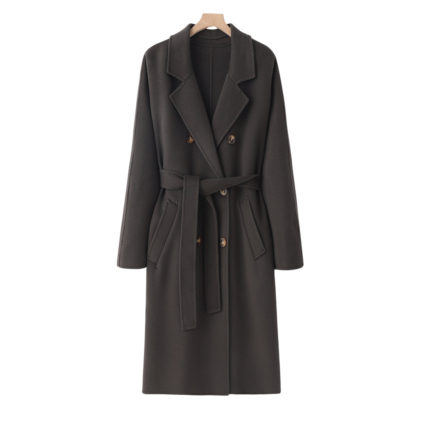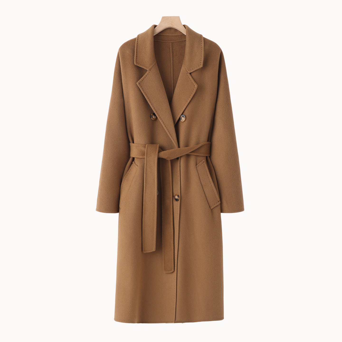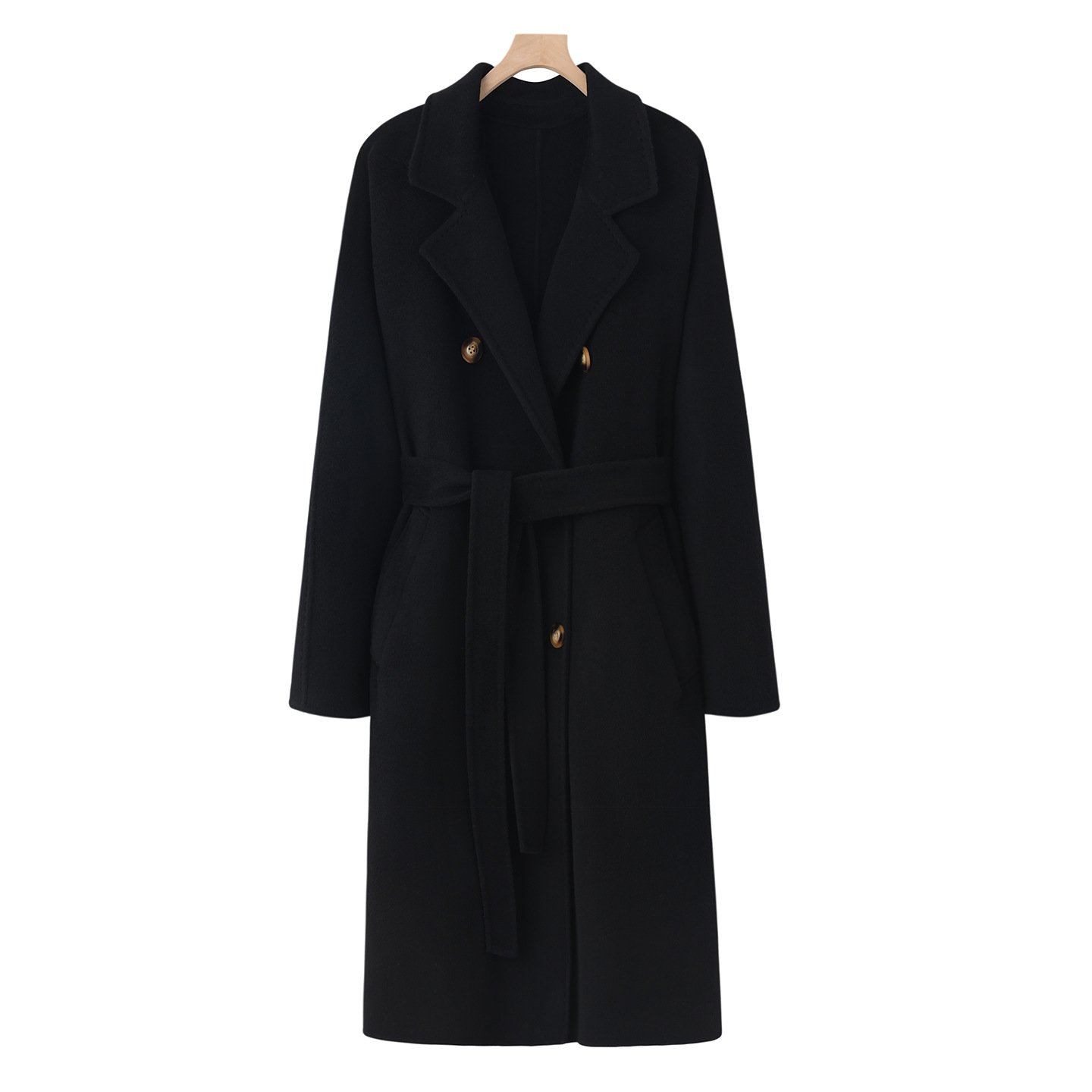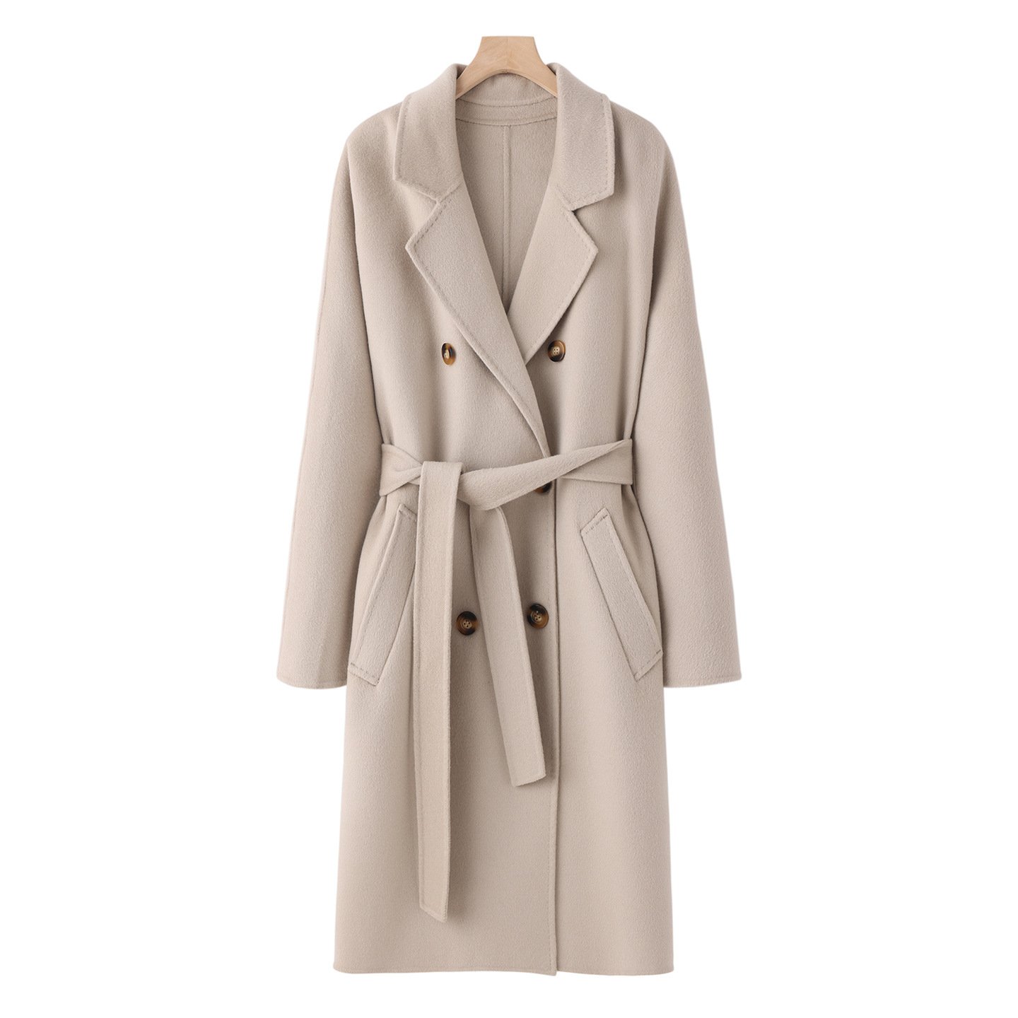 Double-sided cashmere coat women's wool mid-length loose cocoon-shaped over-the-knee Hepburn style coatDouble-sided cashmere coat women’s wool mid-length loose cocoon-shaped over-the-knee Hepburn style coat