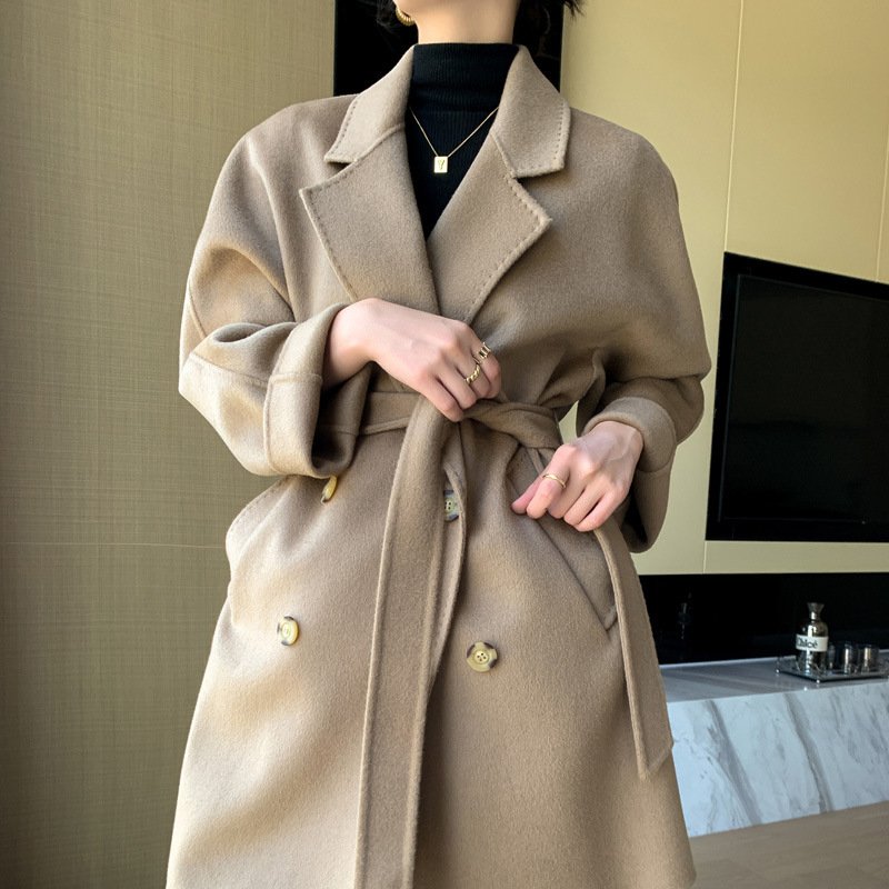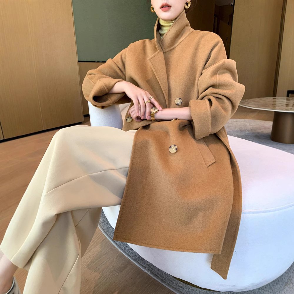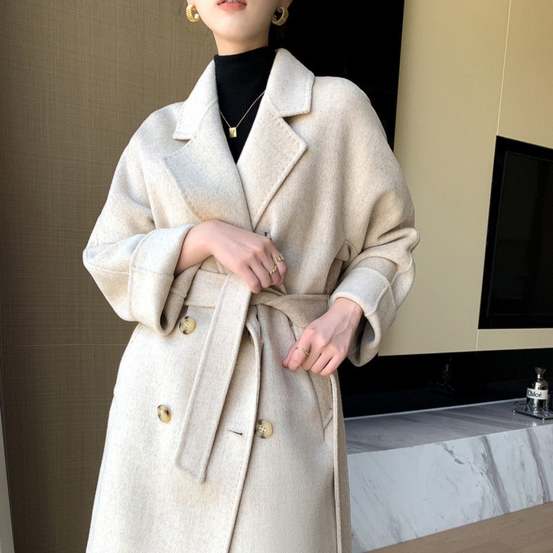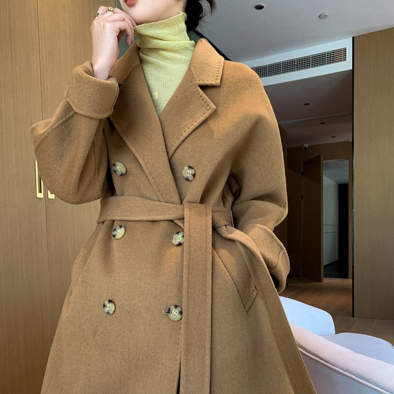 Double sided woolen cashmere coat for women, woolen woolen coat for small people and thick