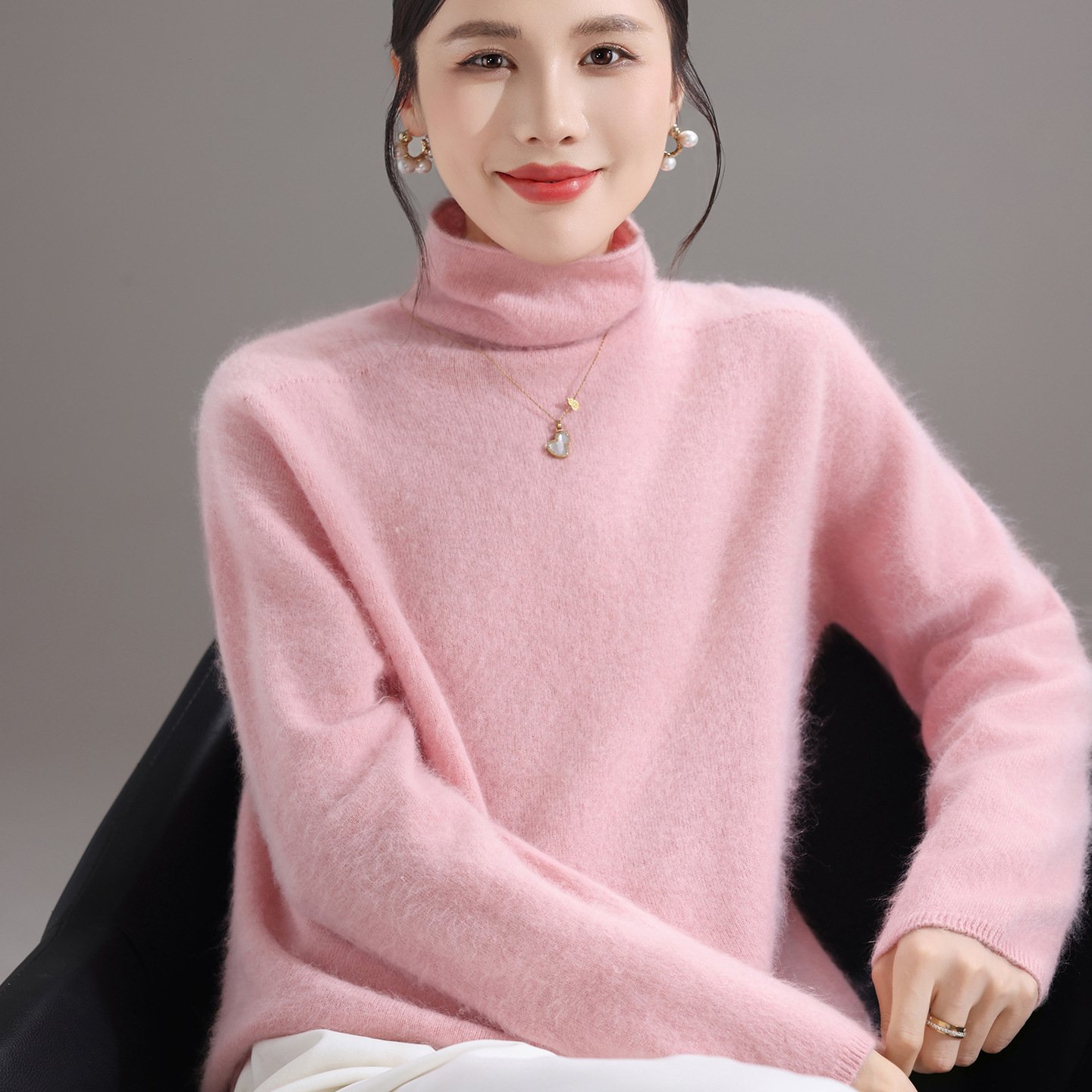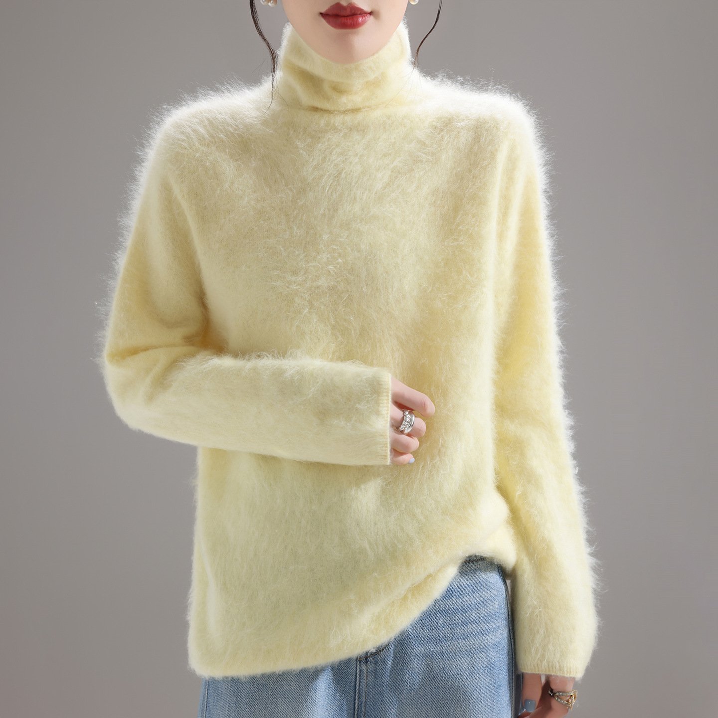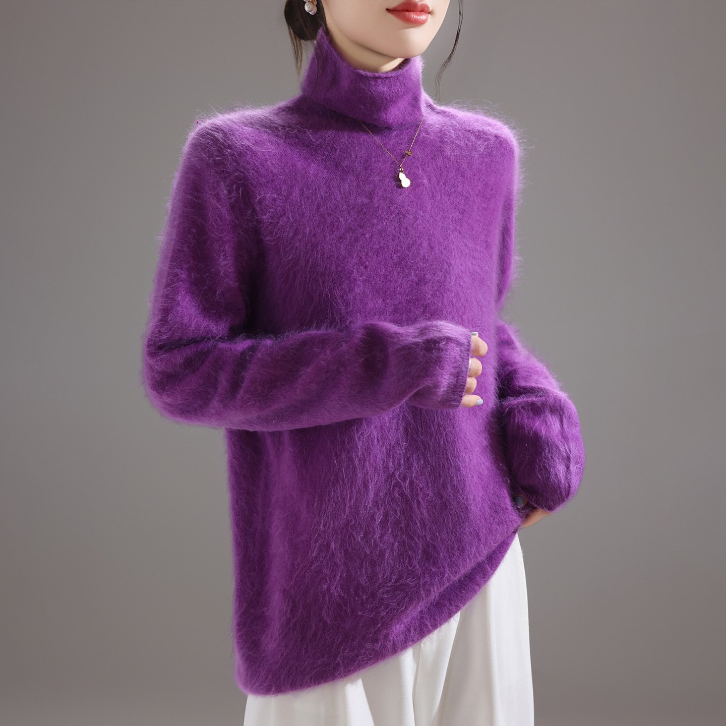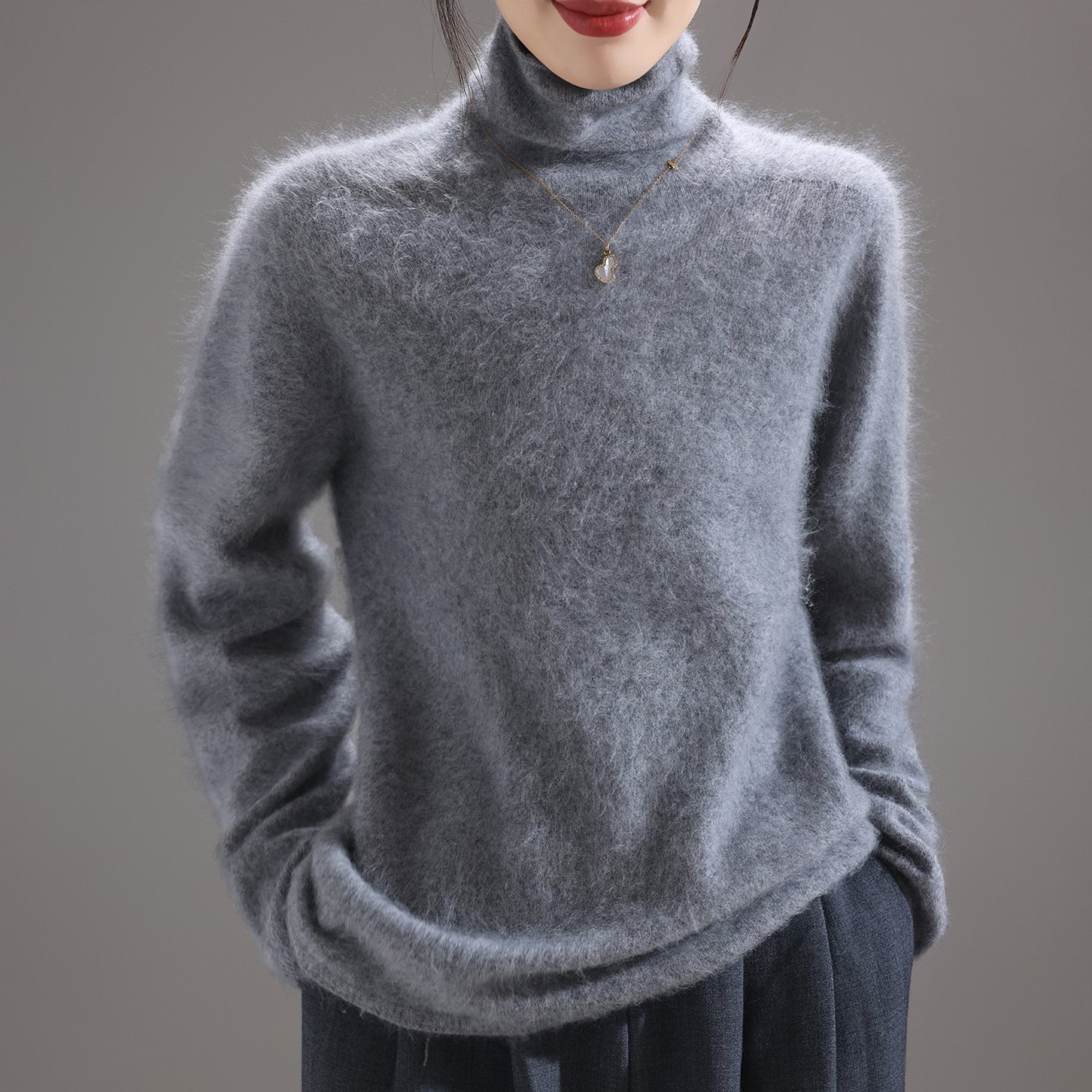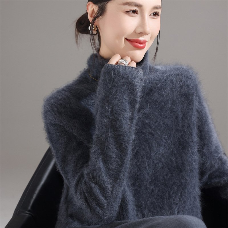 Fashionable, comfortable and versatile pile collar women’s woolen sweater brushed knitted bottoming sweater