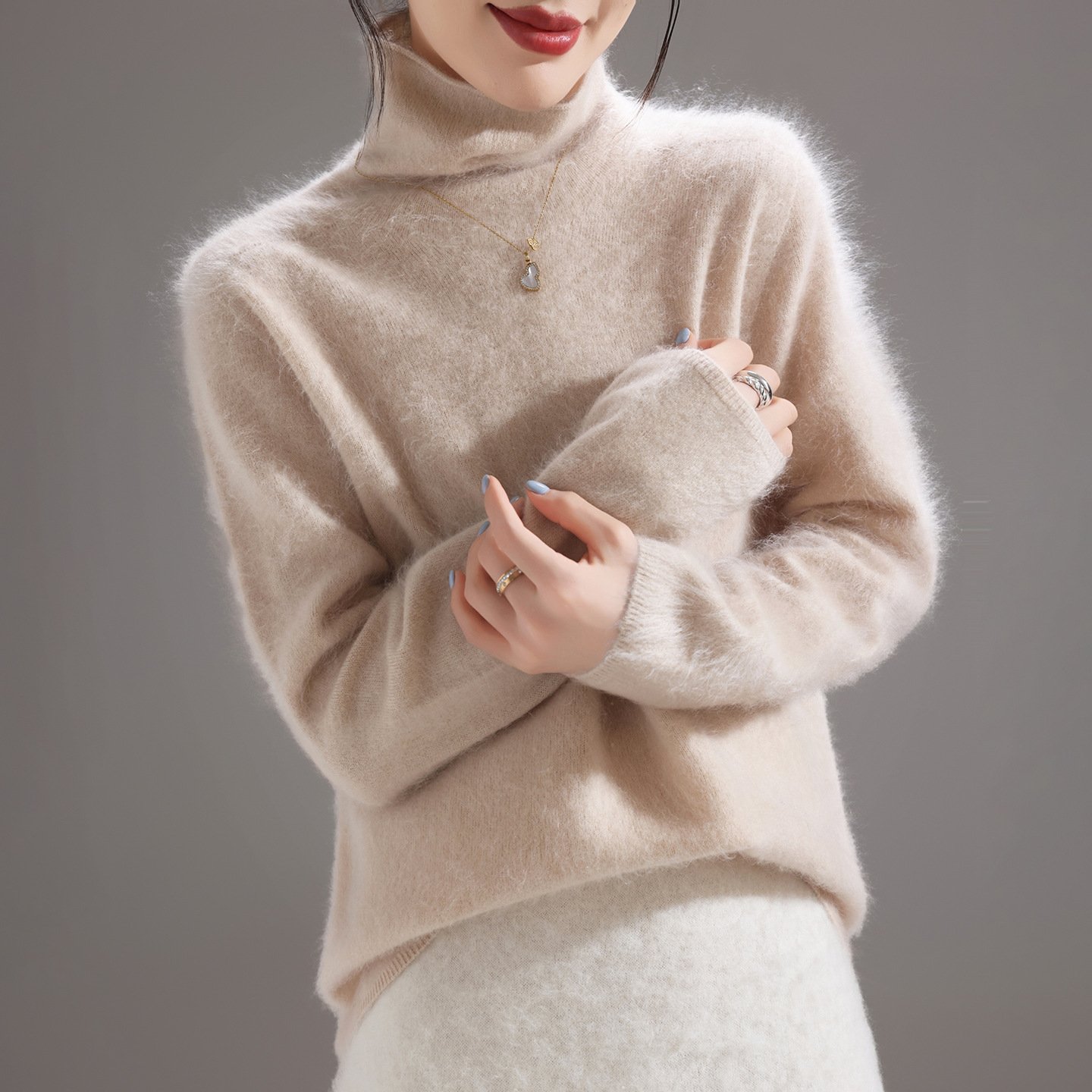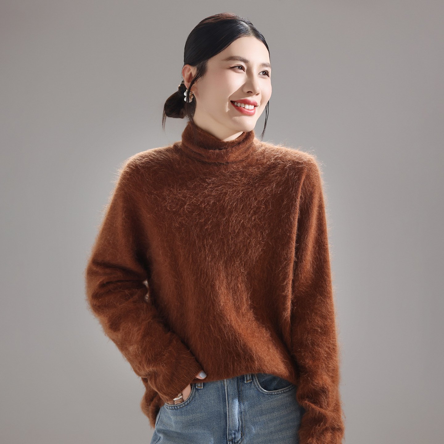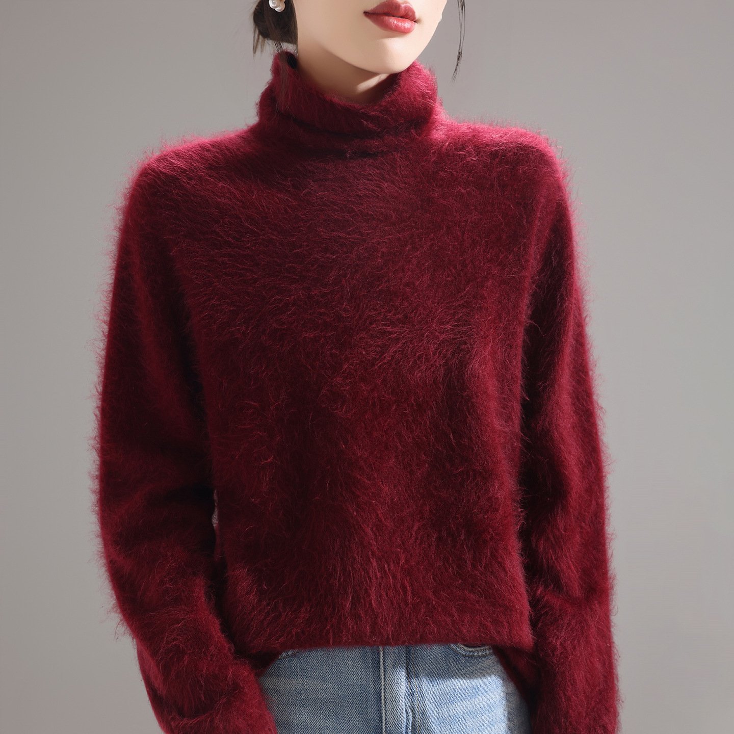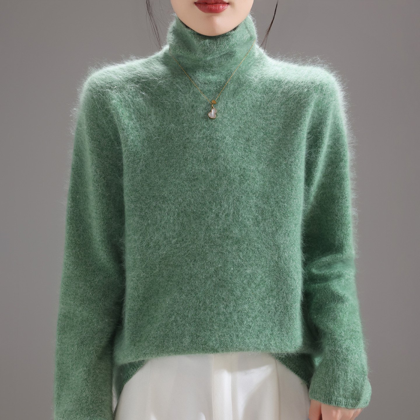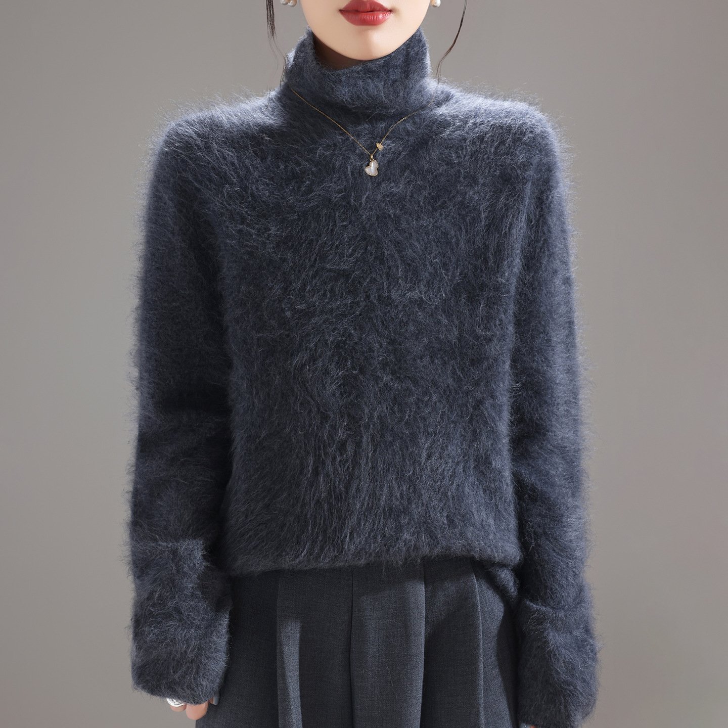 Fashionable, comfortable and versatile pile collar women’s woolen sweater brushed knitted bottoming sweater