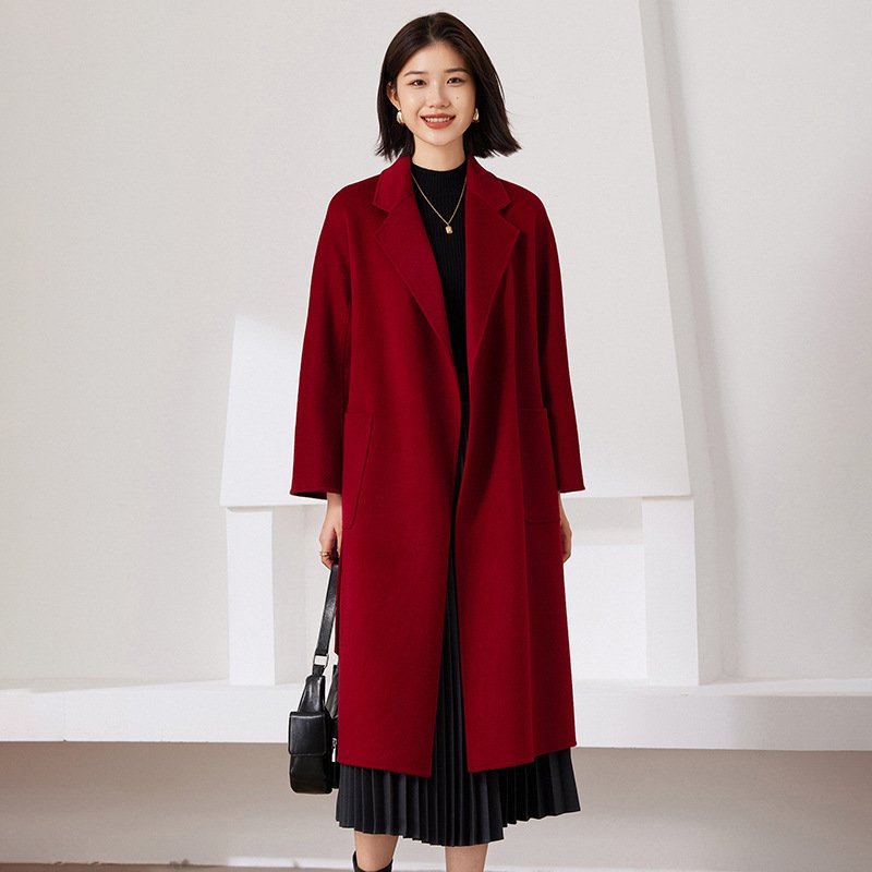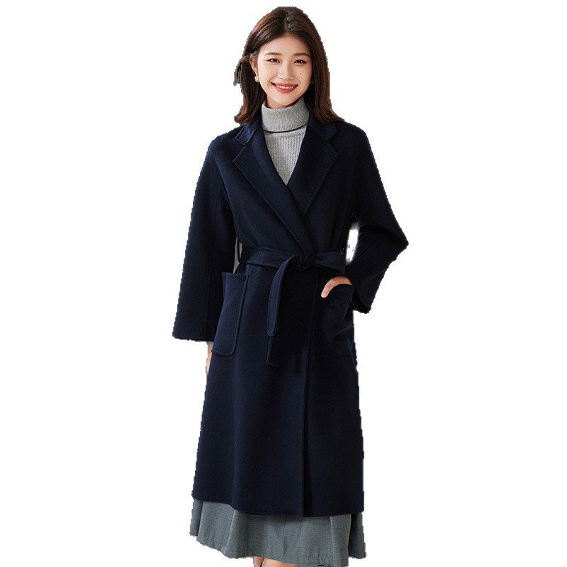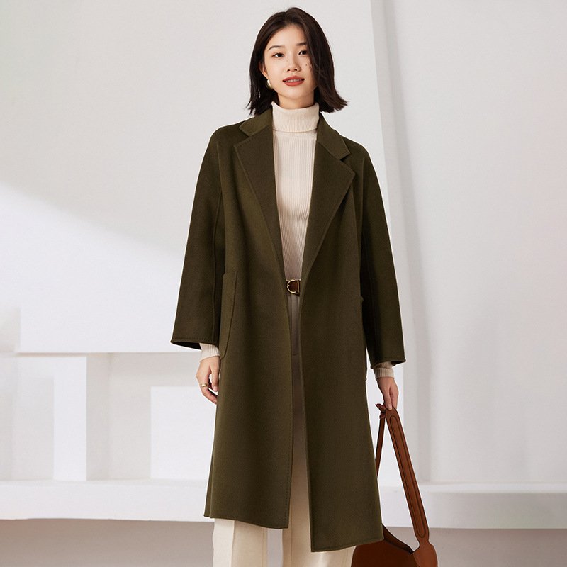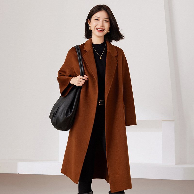 Mid- to long-season new double-sided woolen cashmere coat, casual bathrobe, wool, versatile for little people