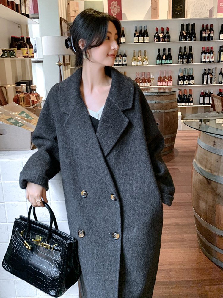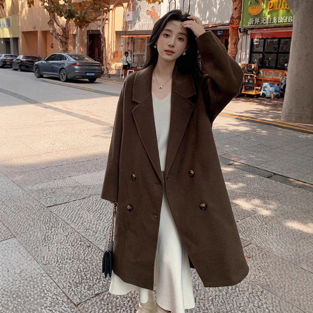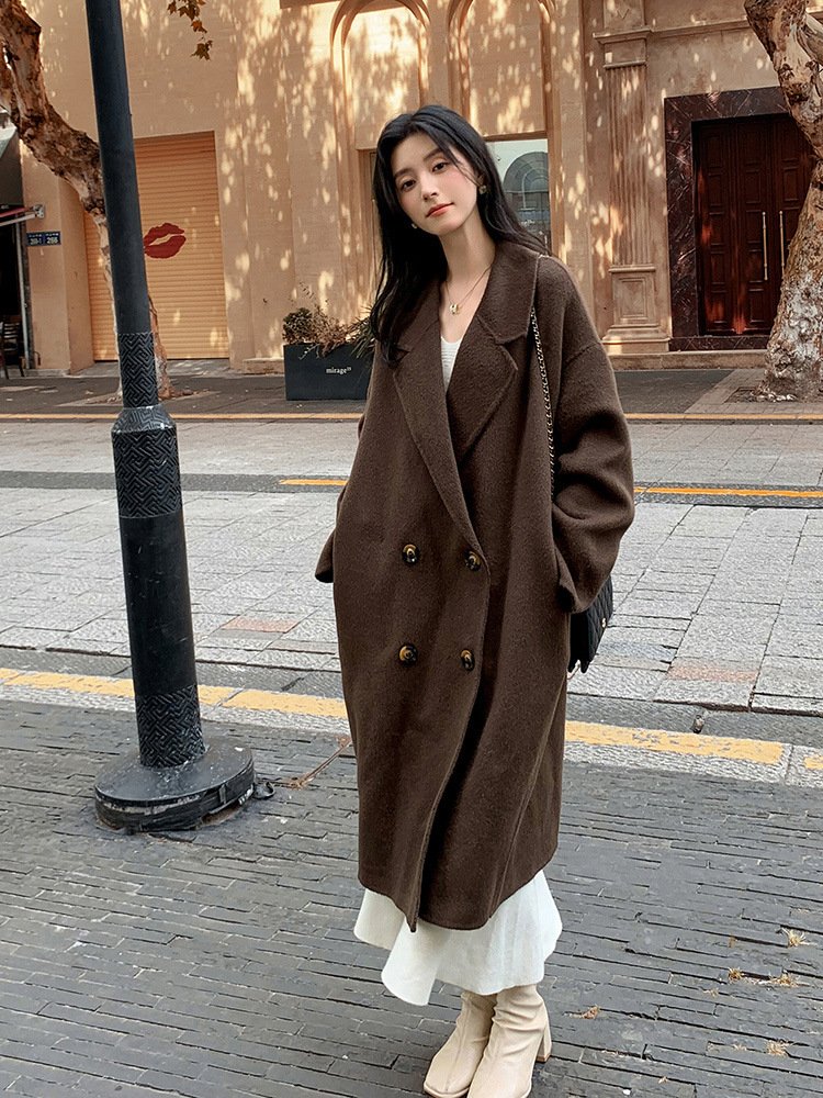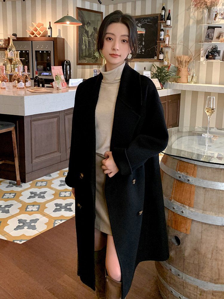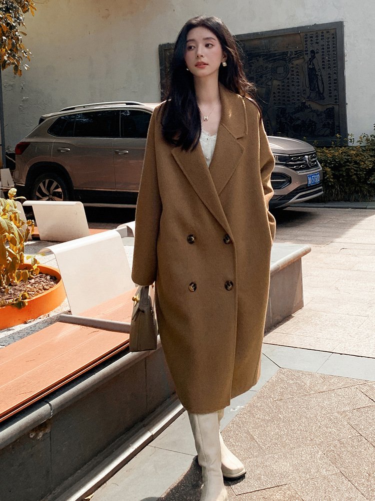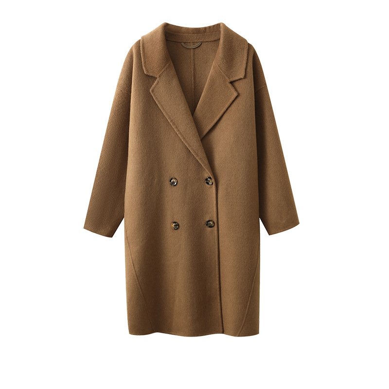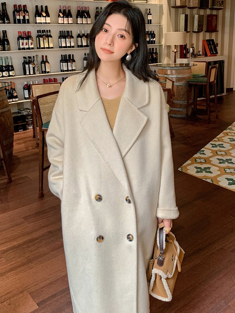 Off-white camel hair coat for women, ladylike style thick mid-length double-sided woolen coat for women with high-end feel