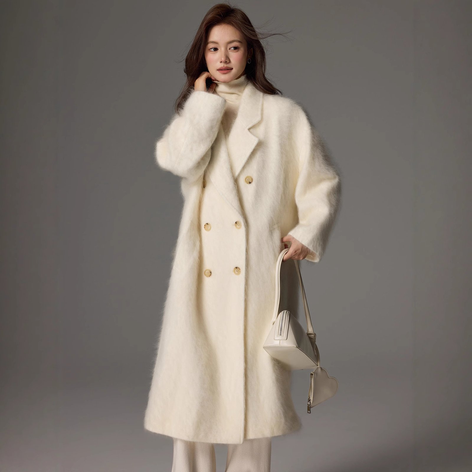 Soft, comfortable, versatile and fashionable long coat brushed double breasted plush coat for womenSoft, comfortable, versatile and fashionable long coat brushed double breasted plush coat for women
