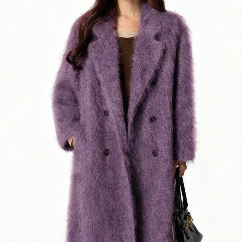 Soft, comfortable, versatile and fashionable long coat brushed double breasted plush coat for women