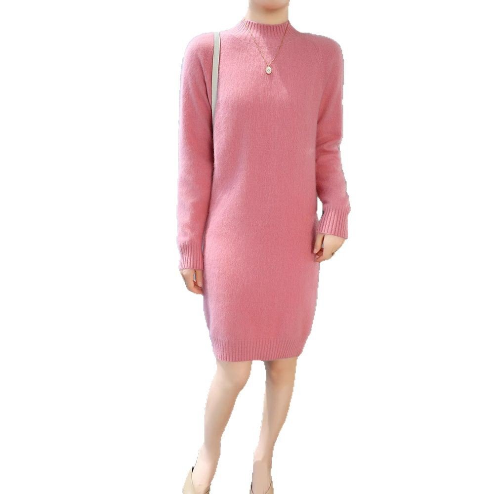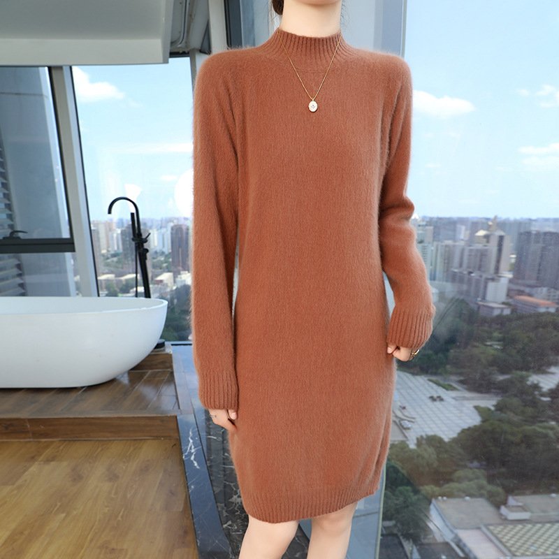 Spring and Autumn mid-length mink velvet knitted sweater skirt half turtleneck pullover hip bottoming skirt with women’s knitted sweater underneath