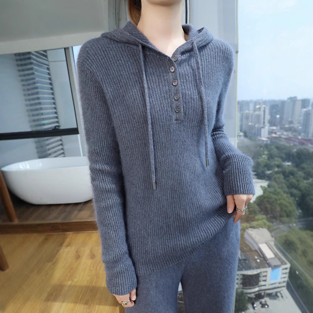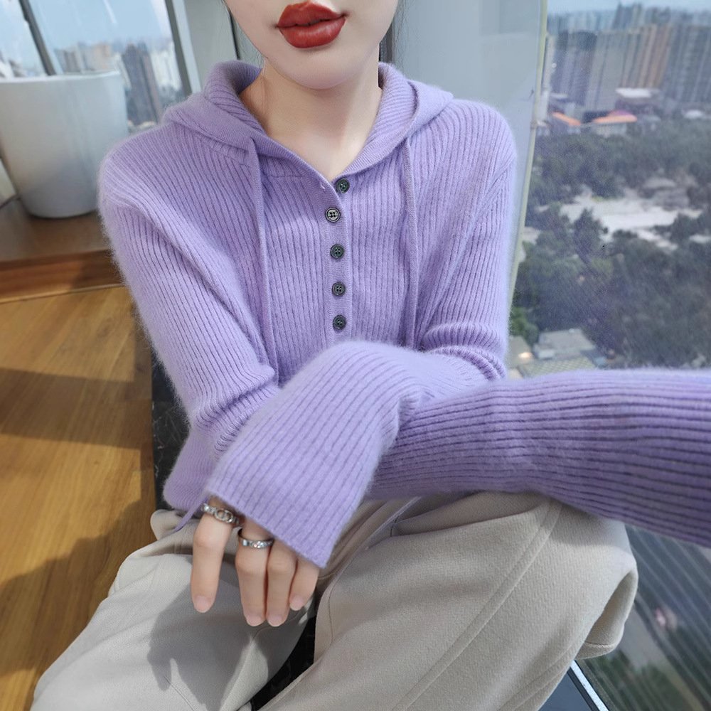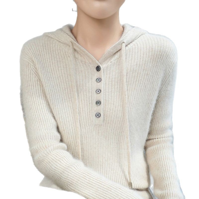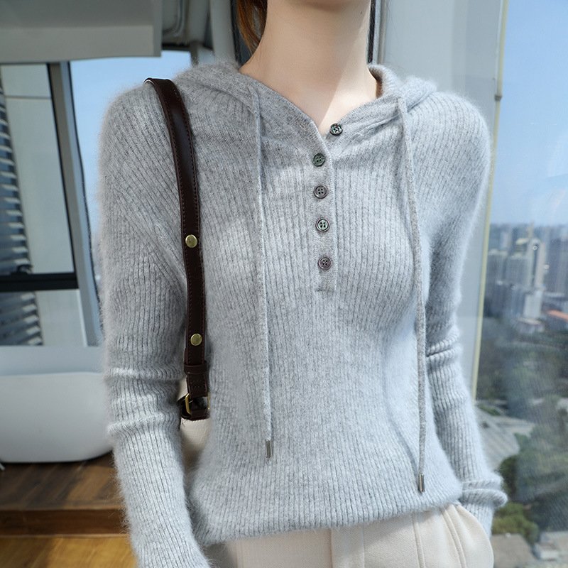 Spring and Autumn mink sweater hooded sweatshirt wool sweater women solid color loose casual hoodie sweater
