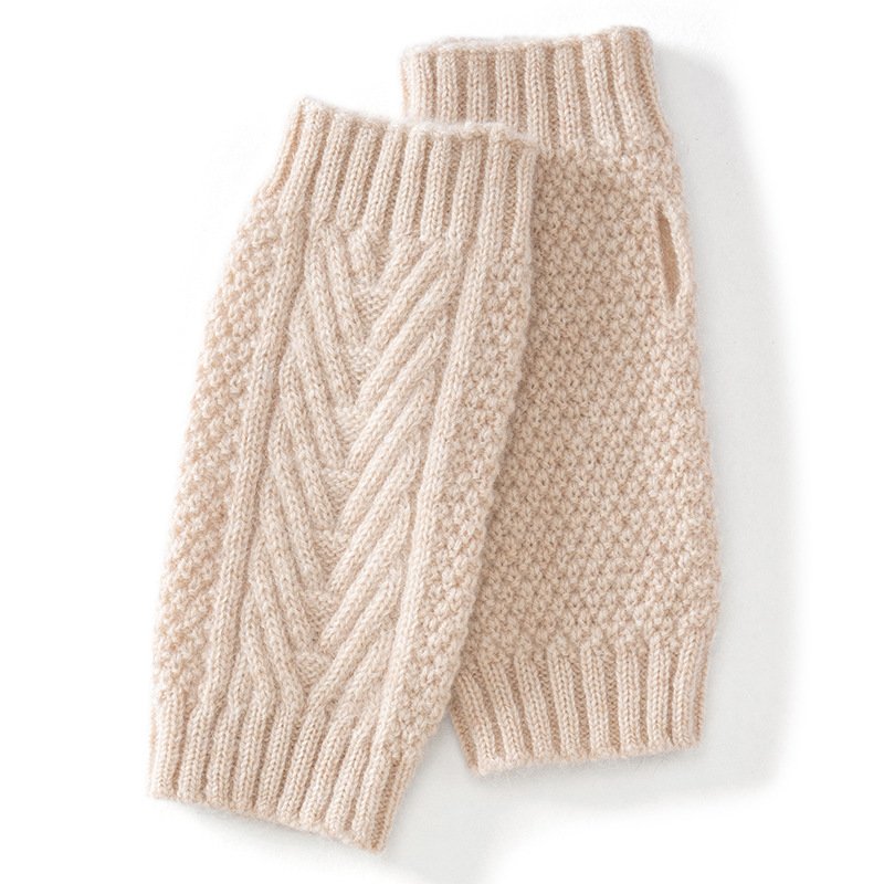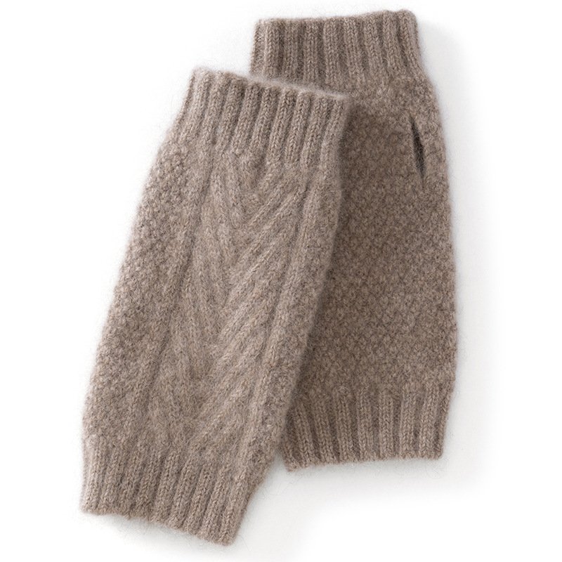 Versatile women’s double-strand thickened twist half-finger gloves cashmere warm