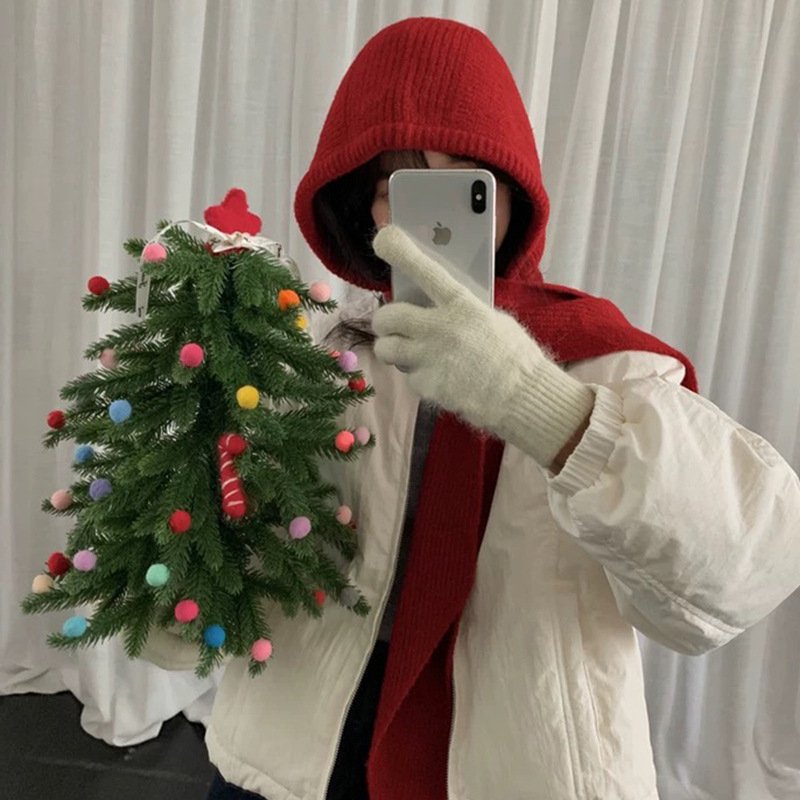 Wind hooded scarf knitted warm ear protection scarf versatile women’s wool beanie
