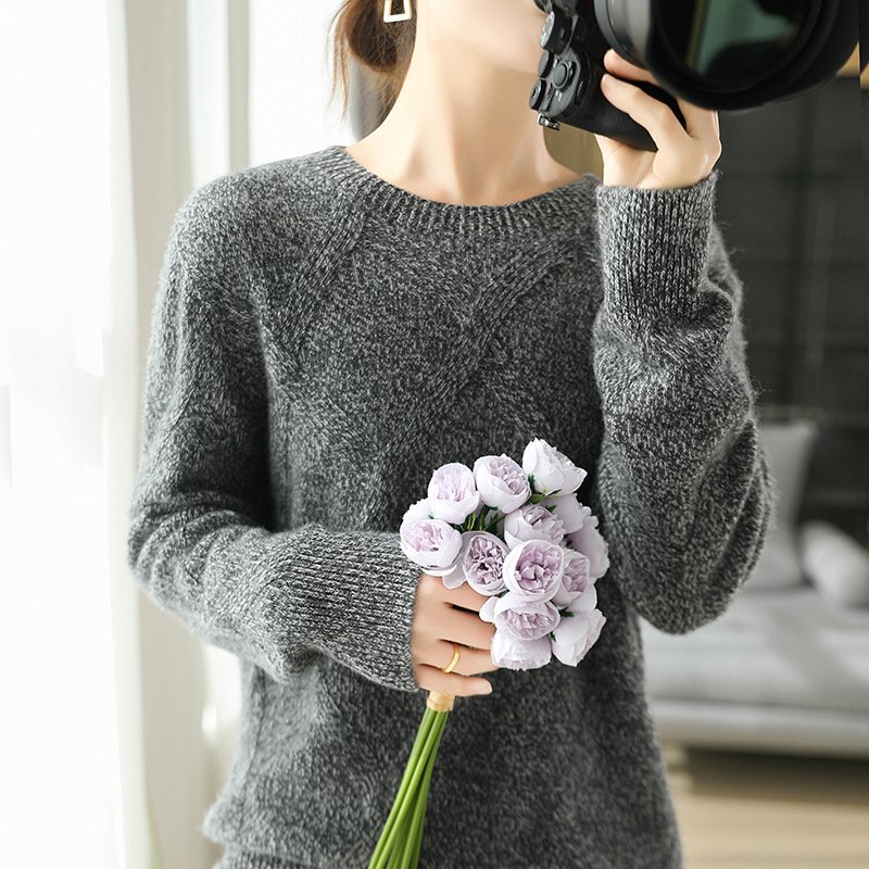 Women’s Spring Cardigan Wool Simple Fashionable Round Neck Pullover Floral Yarn Versatile Sweater
