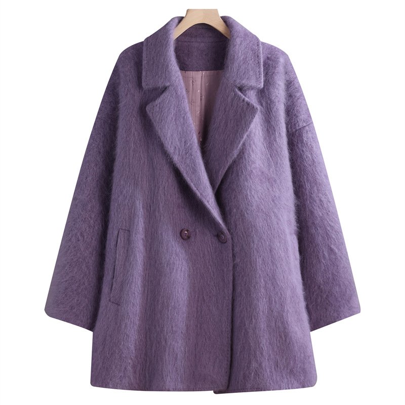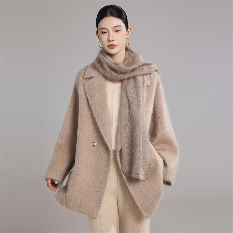 Women’s wool double-sided woolen coat plush long hair mid-length petite high-end feel