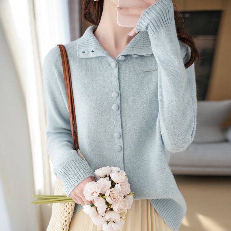 Wool Cardigan Women’s Lapel Buttoned Knitted Sweater Coat Loose Lazy Long Sleeve Top