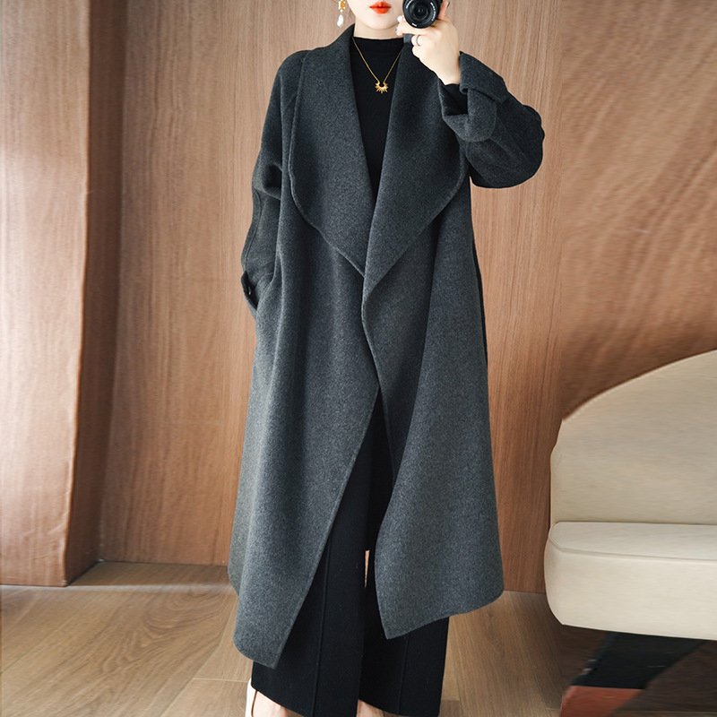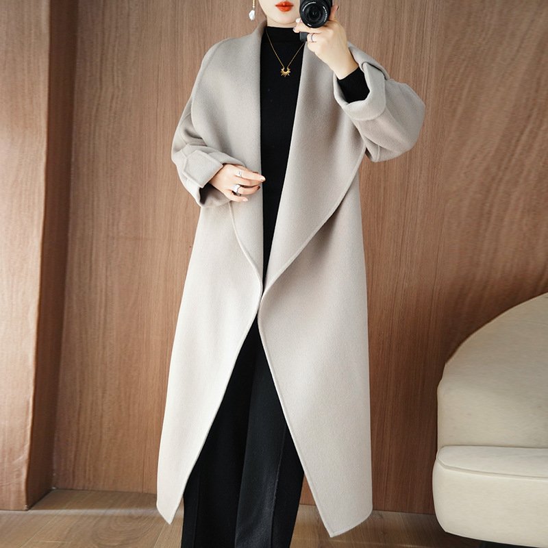 Wool double-faced woolen coat women’s extended length over the knee lace-up coat loose