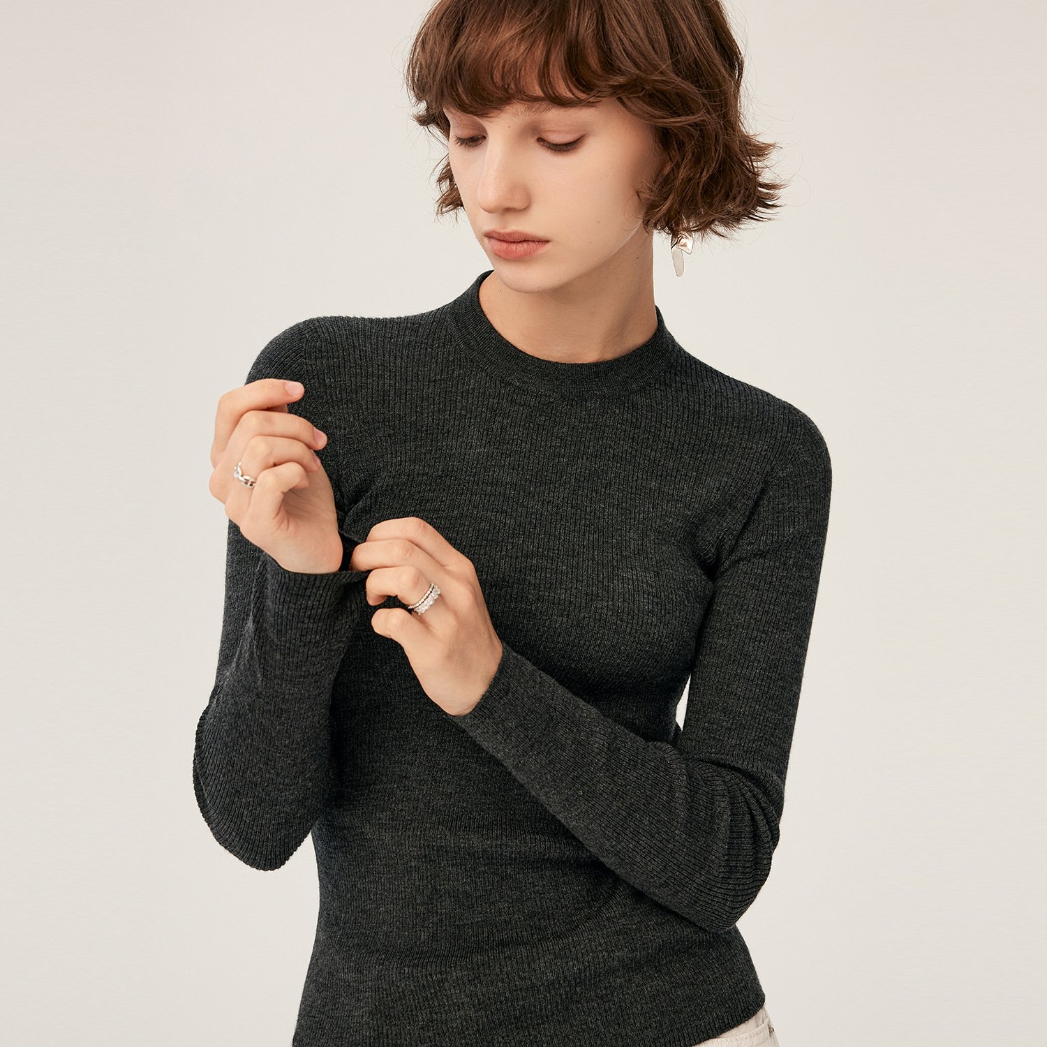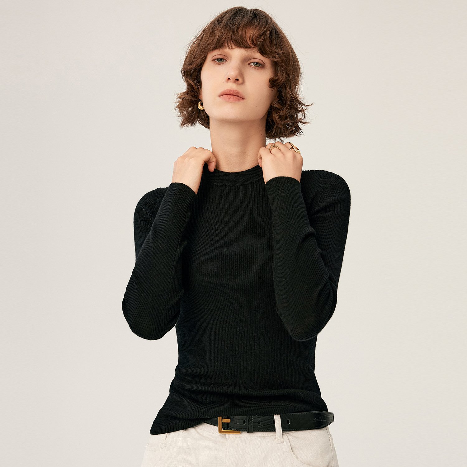 Wool sweater base layer simple style half turtle neck machine washable sweater
