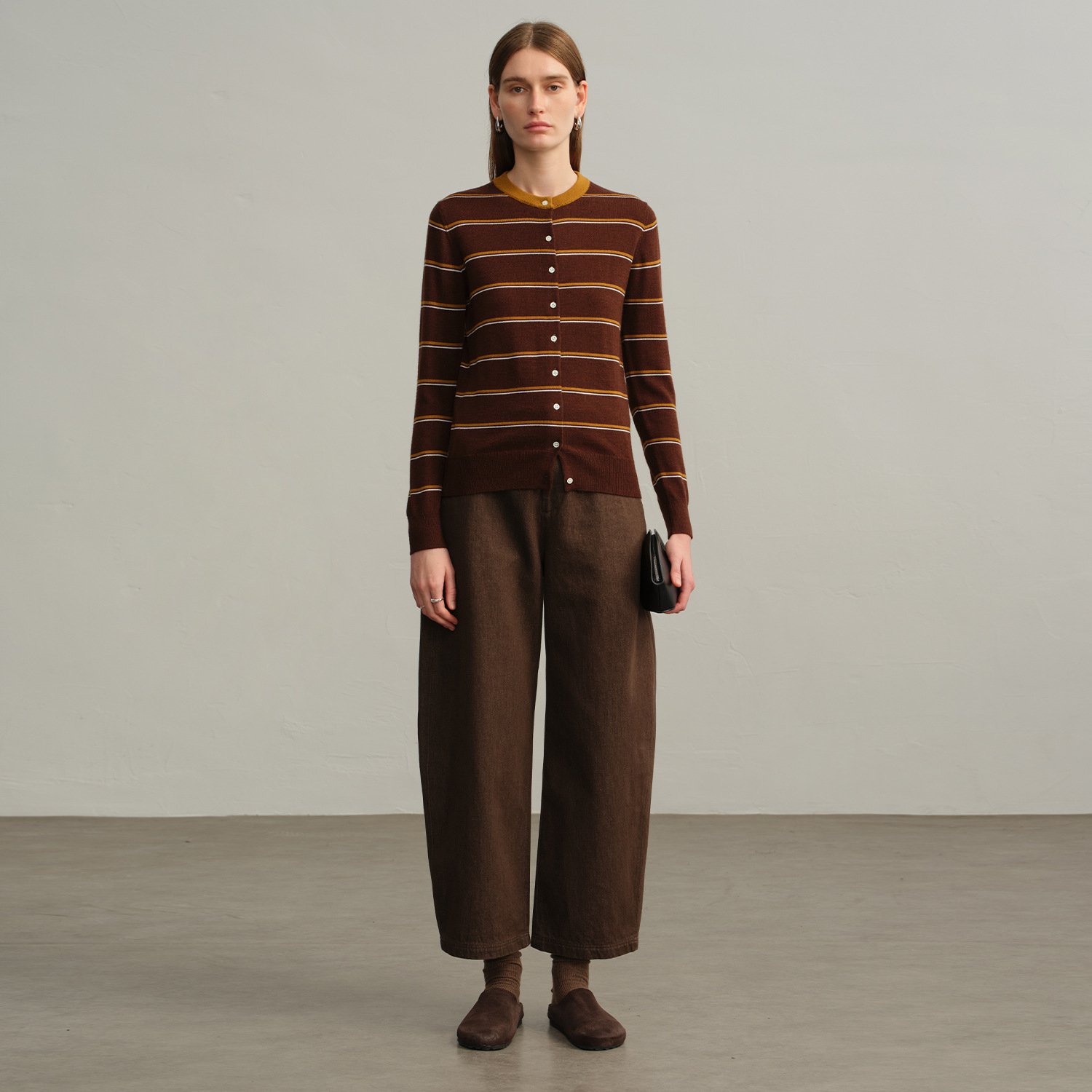Wool sweater bottoming machine washable sweater cardigan round neck striped top